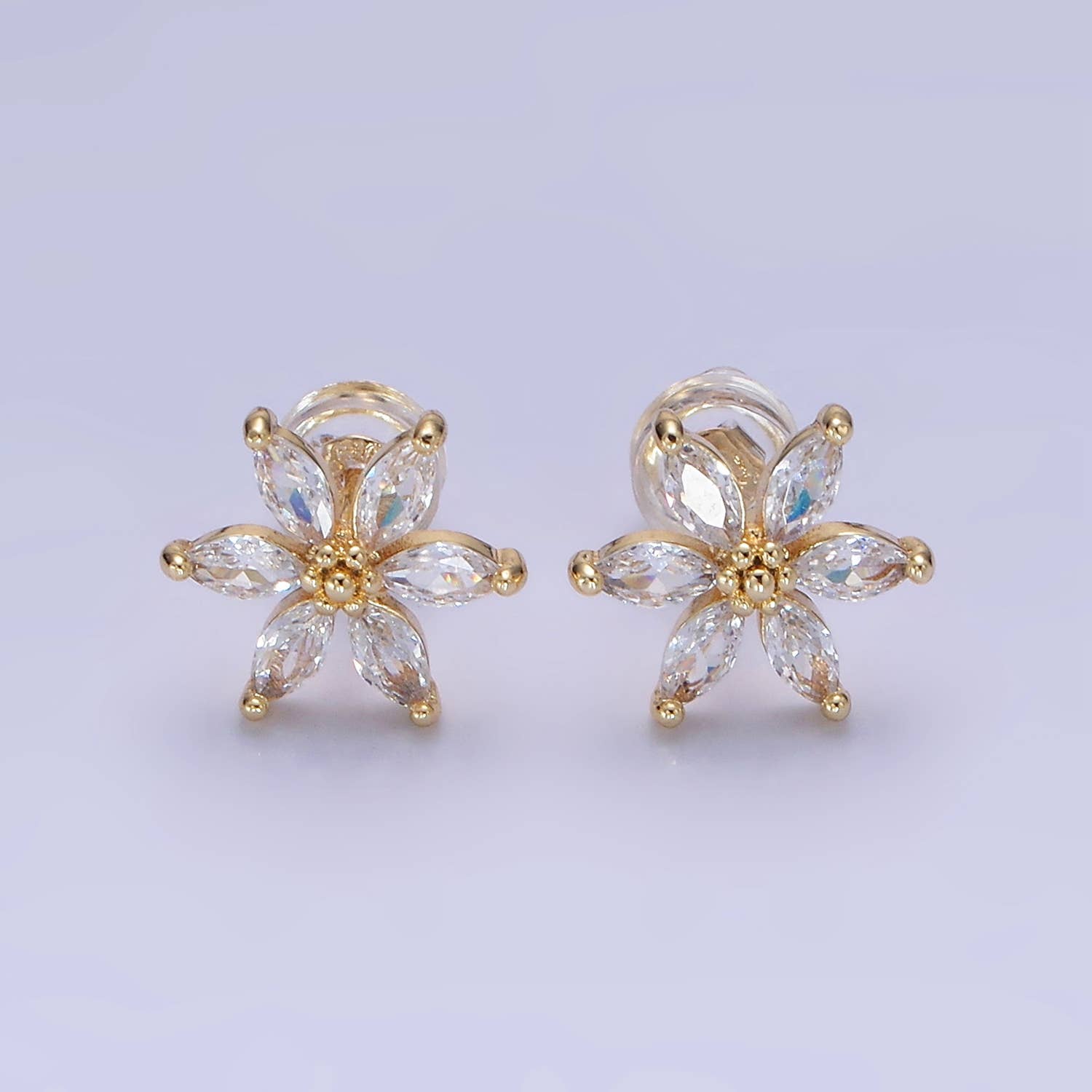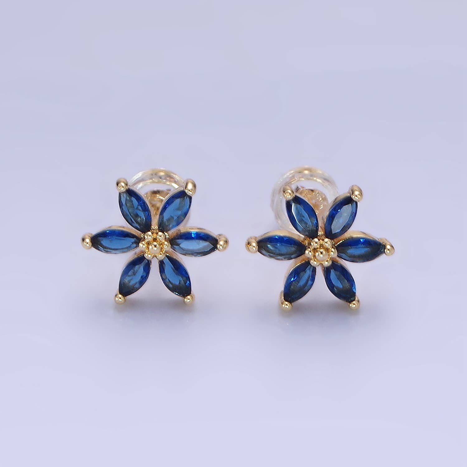 14K Gold Filled Clear, Purple, Blue CZ Flower Stud Earrings