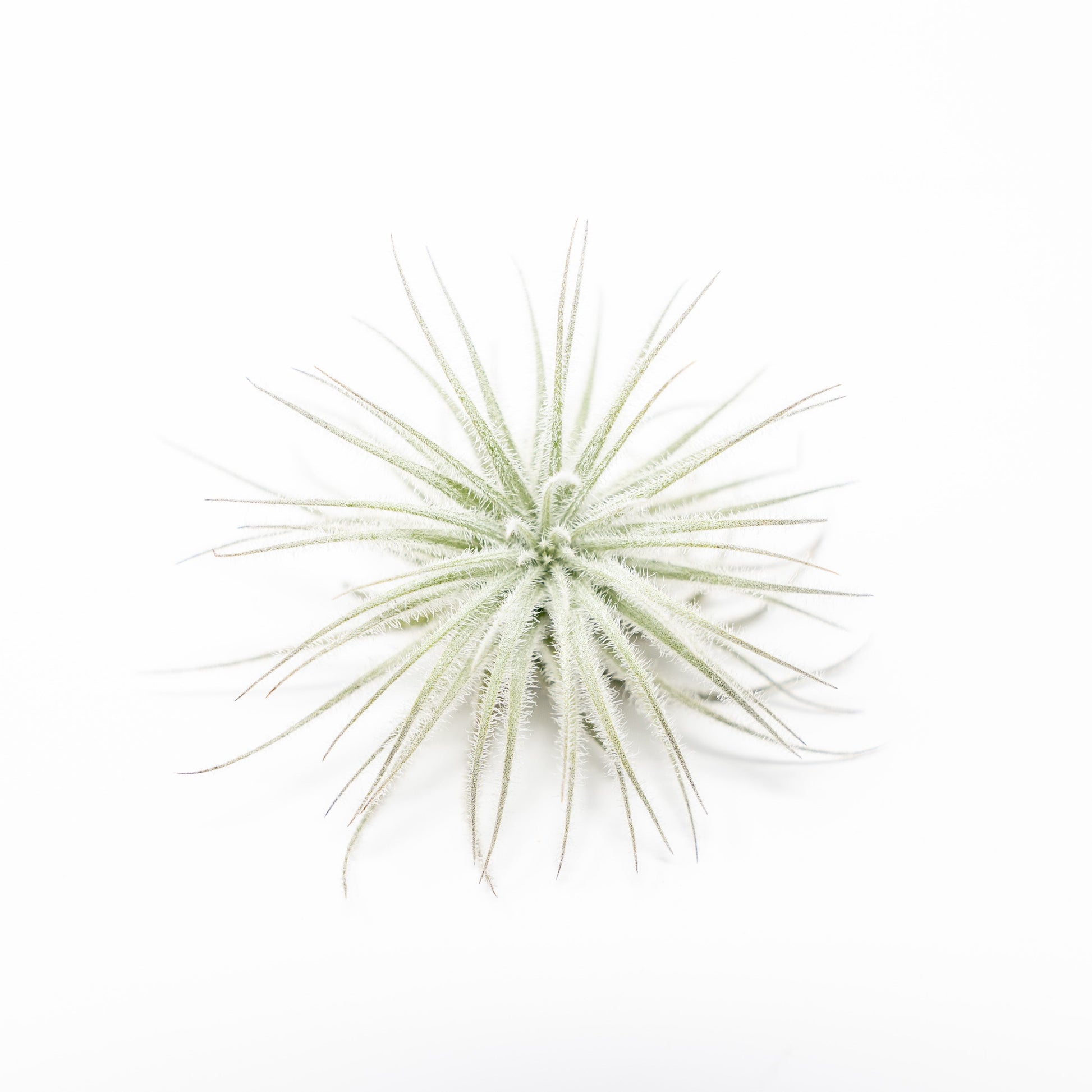 One of the most sought-after tillandsia that we have! An adorable easy-care plant. The trichomes create a bright white appearance. The inflorescence (spike) is purple with lavender blooms.