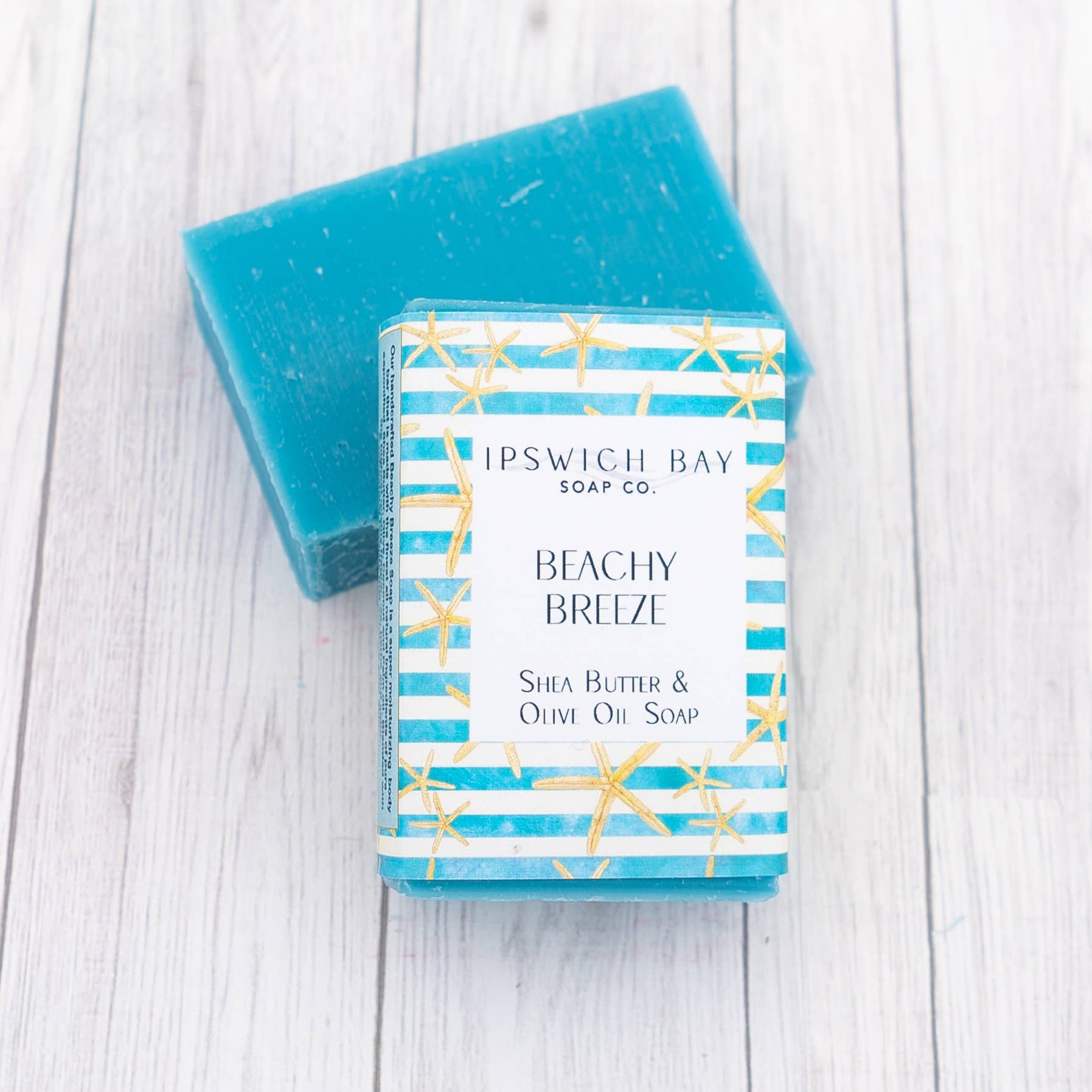 Our handcrafted Beachy Breeze Soap is a super moisturizing body bar that is made with the finest all natural ingredients of pure saponified Shea Butter, Olive, Coconut and Palm oil. Blended with the highest quality fragrances, herbs and color. A refreshing favorite that soothes your skin.