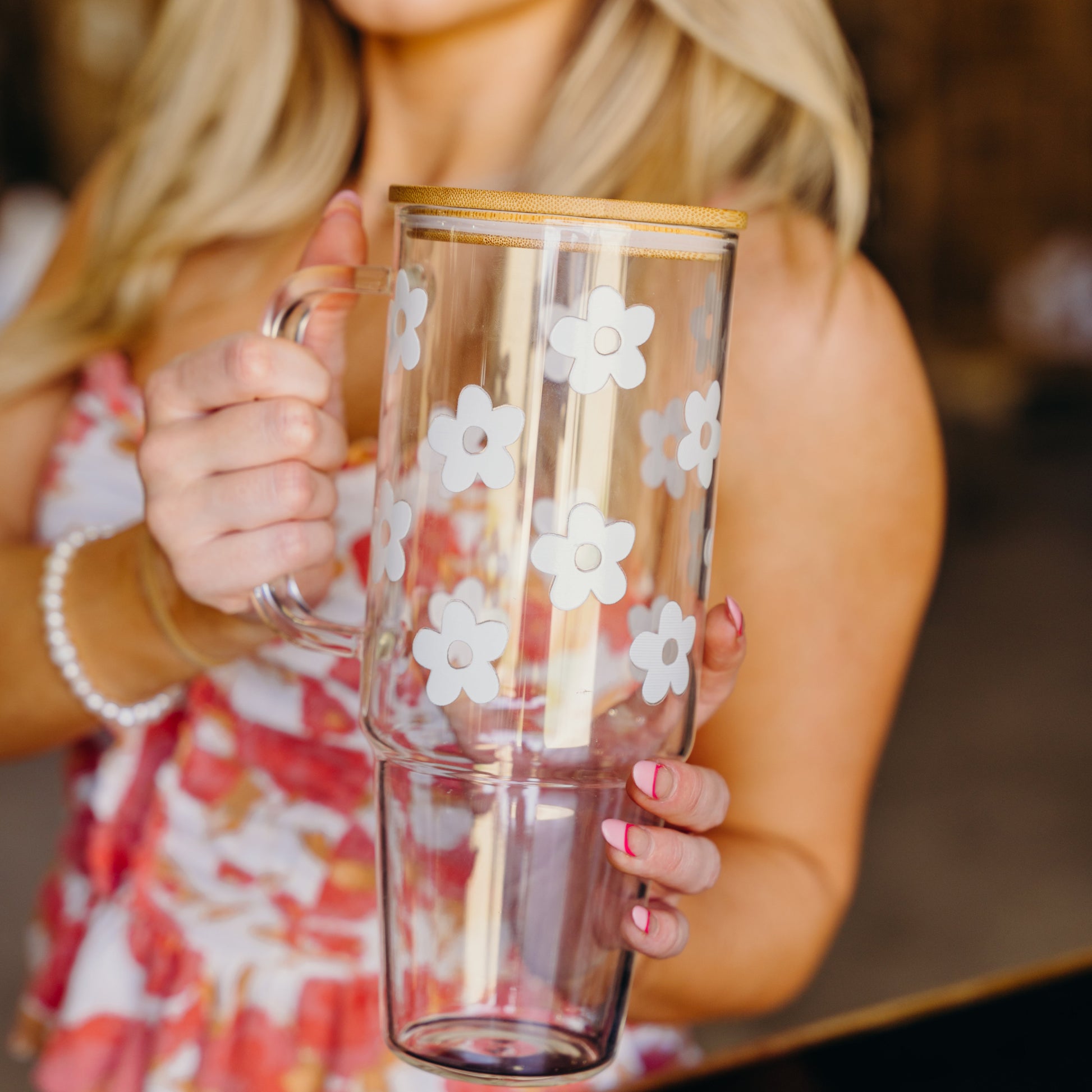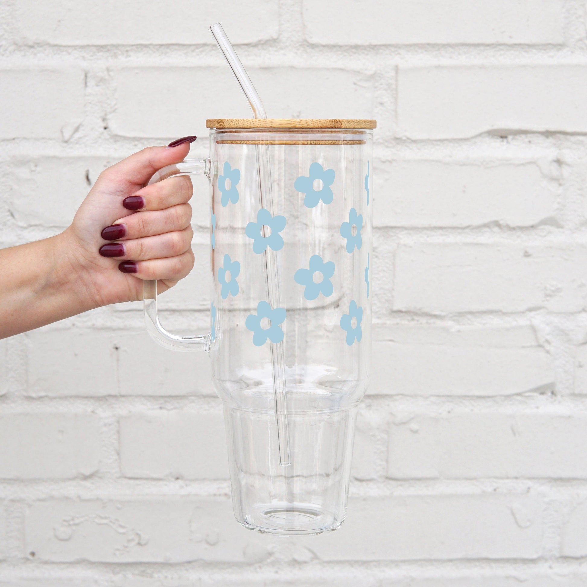 Daisy 40oz Glass or Plastic Tumbler With Lid and Straw