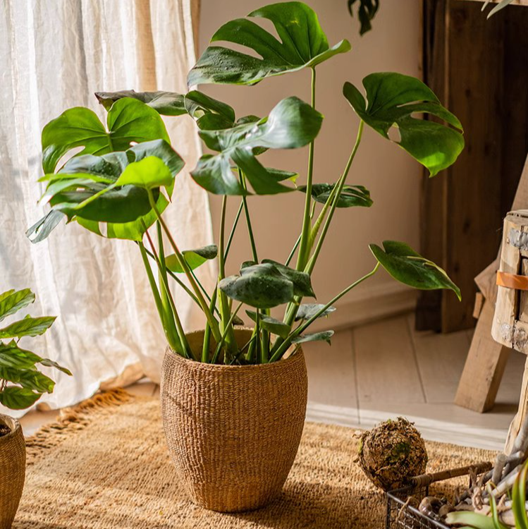 Faux Grass-Woven Cement Planter