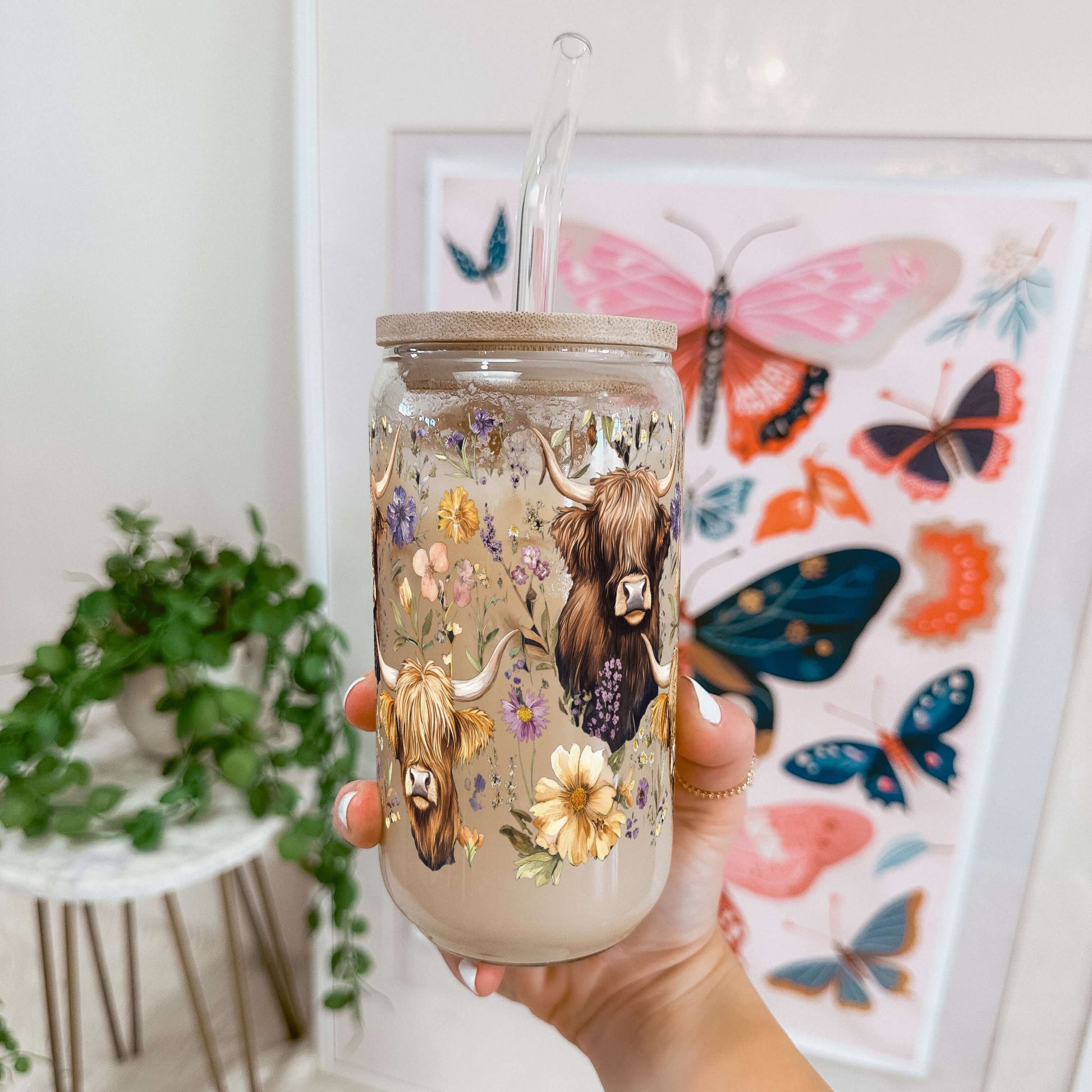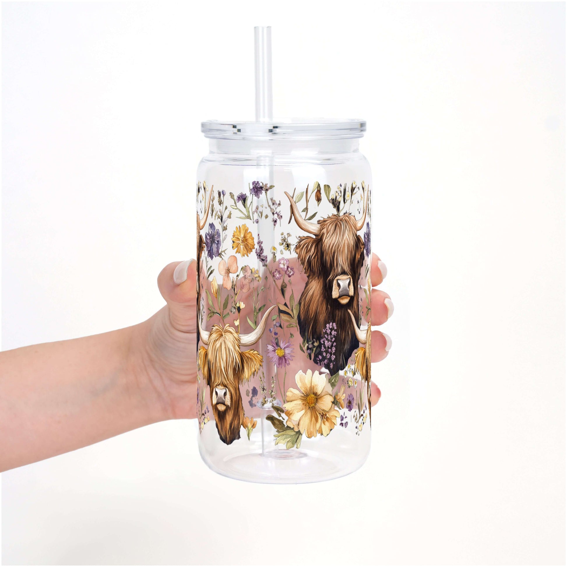 Wildflower Highland Cow With Lid and Straw